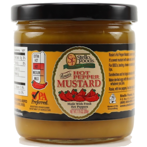 View full detailsRosie's Hot Banana Pepper Mustard is fantastic for dipping or using on your favorite sandwich with a kick of heat! Also delicious as a glaze on ham...