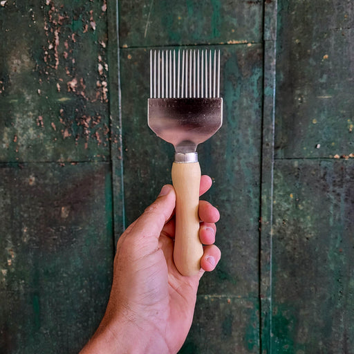 View full detailsUncapping Scratcher with Wood Handle A stainless steel uncapping scratcher with a classic round wooden handle, used to remove wax cappings from hon...