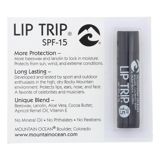 View full detailsMountain Ocean SPF15 Lip Trip Lip Balm, 0.165 Oz. (Pack of 12) Mountain Lip Trip Lip Balm Key Features: Protects lips from ...