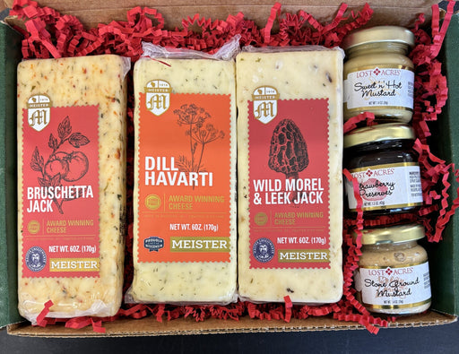 View full detailsThree cheese and three jams/mustards. The cheese in this box are Havarti, Banana Pepper jack and Sweet fire mango jack. The jams/mustards are Blueb...