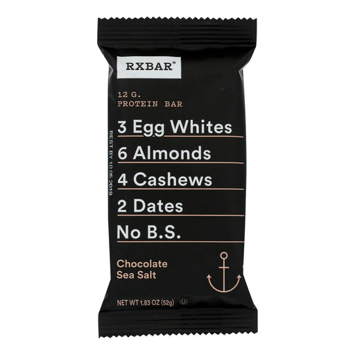 View full detailsRxbar protein bar, chocolate sea salt provides gluten-free, all natural goodness. There is no added sugar, dairy, peanuts or soy in this healthy ba...