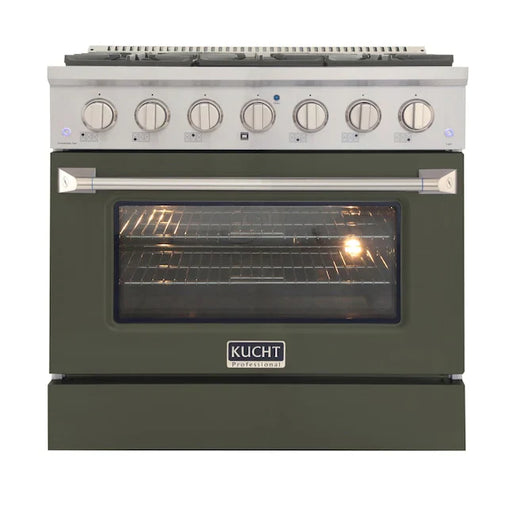 Kucht 36" Gas Range, Stainless Steel with Olive Green Oven Door, KNG361-OG FREE SHIPPING 4 Year Full Warranty 30 Day Return Policy Lowest Price Gua...