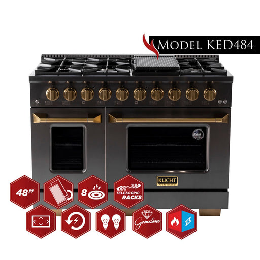 View full detailsKUCHT Gemstone Professional 48 in. 6.7 cu. ft. Natural Gas Range with Sealed Burners, Griddle/Grill and Two Ovens - One Convection - in Titanium St...