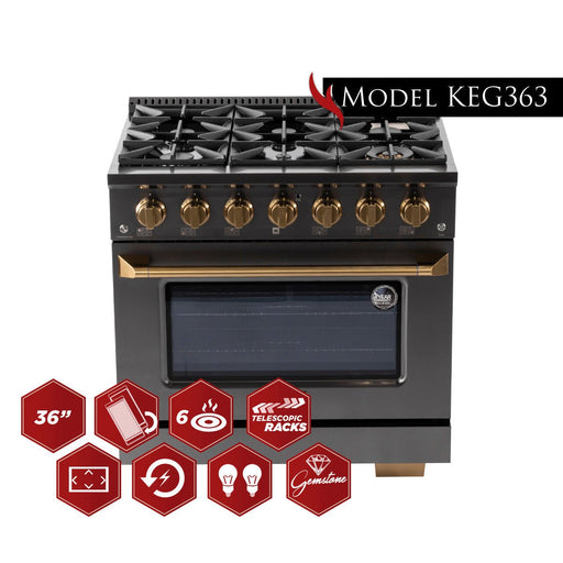 View full detailsKUCHT Gemstone Professional 36 in. 5.2 cu. ft. Natural Gas Range with Sealed Burners and Convection Oven in Titanium Stainless Steel KEG363 FREE S...