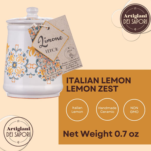View full detailsArtigiani dei Sapori, Italian Lemon Peel, Granules in Italian Handmade Ceramic Jar, Lemon Zest and Rind, Herb, Spice & Seasoning Gifts Premium...