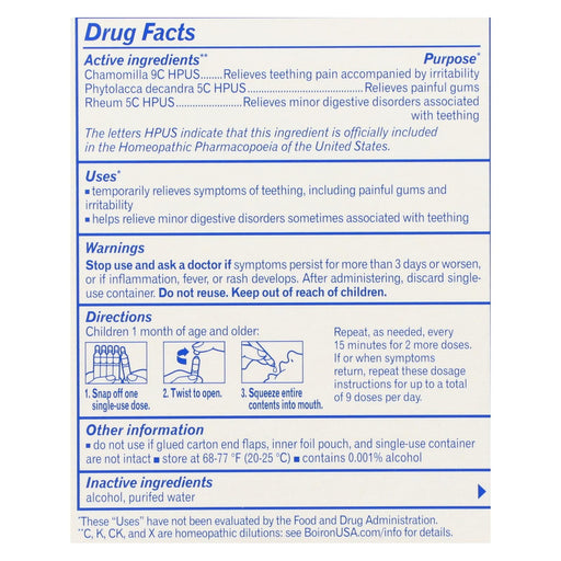 View full detailsBoiron Camilia Teething Relief (15 Doses) Gentle Relief for Teething Discomfort Soothe your baby's teething pain naturally with Boiron Camilia Te...