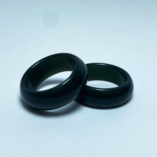 View full detailsDelicate jade rings that bring protection to its wearer. PRODUCT DETAILS: Hetian Green Jade: Size 8 1/2- 9 1/8 GanQing Dark Jade: Size 7 1/2- 10