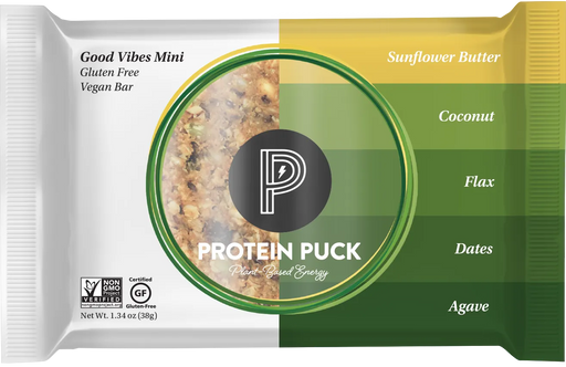 View full detailsTreat Your Taste Buds with the Good Vibes Protein Puck Bar: A Symphony of Flavor and Health Indulge in the Harmony of Sunflower Butter, Protein, a...