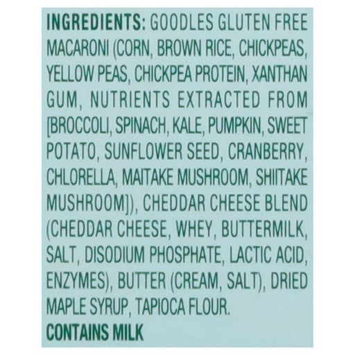 View full detailsGoodles Cheddy Mac Gluten-Free Goodness Key Features & Benefits: Gluten-free goodness: Made with organic quinoa and lentils, Goodles Chedd...