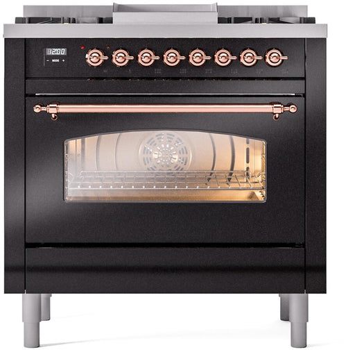 View full detailsILVE Nostalgie II 36" Dual Fuel Natural Gas Range, Glossy Black, Copper Trim UP36FNMPBKP Please call (800)604-1380 Ext#2 before placing your order...