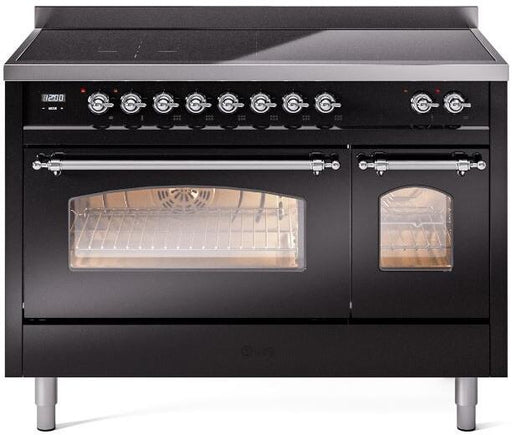 View full detailsILVE Nostalgie II 48" Electric Range, Glossy Black, Chrome Trim UPI486NMPBKC Please call (800)604-1380 Ext#2 before placing your order to confirm ...
