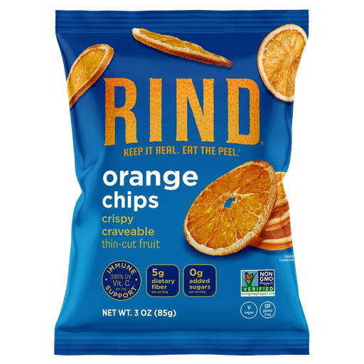 View full detailsRind Snacks Orange Fruit Chips, 12-Pack of 3 Oz Bags Indulge in the tangy zest of oranges with each satisfying bite of Rind Snacks Fruit Chips Ora...