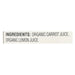 - Simple Ingredients: Made with organic carrot juice and organic lemon juice for a balanced flavor.
