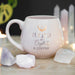 This trendy pink mug features 'Fueled by crystals and coffee' text accented by a gold foil crescent moon and crystal design. A fun, unique gift for any crystal collector. 500ml capacity.