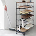 Rolling Five-Tier Shoe Rack (34.25" H) - Steel + Wood