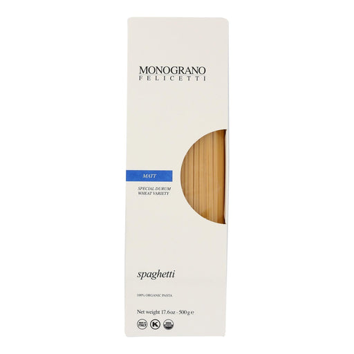 View full detailsExperience the unique taste of Italy with Monagrano Matt Spaghetti. This pack of 12 boxes of 17.64 oz of 100% organic durum wheat semolina and wa...