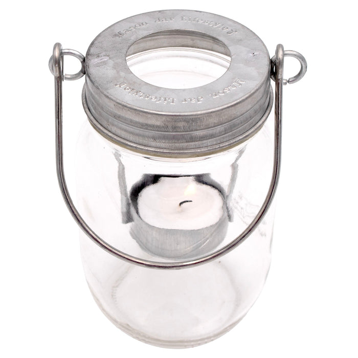 Galvanized Metal Tea Light Candle Holder Lids With Handles for Mason Jars 3 Pack
