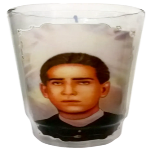 View full detailsCandle Justo Juez White Large Cup: This product is a white candle featuring the image of Justo Juez, or the Just Judge. Religious Symbolism: Jus...