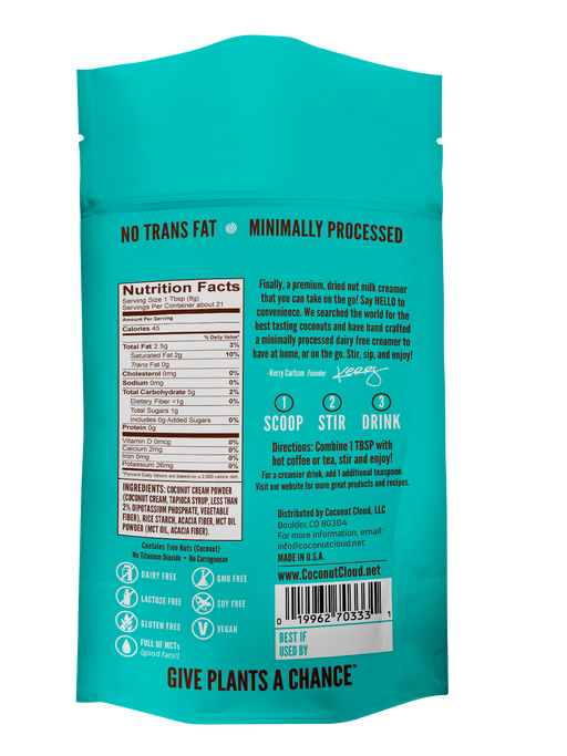 Coconut Cloud Vanilla Creamer with MCT Oil - Now Available in 6 oz Pouch Our dried coconut milk creamer is clean and simple. With zero trans fats, ...