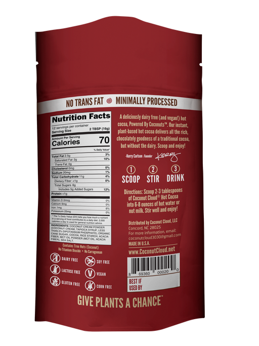 View full detailsVegan Instant Hot Cocoa Mix Discover the wholesome goodness of coconuts with our 100% dairy-free Coconut Cloud Vegan Instant Hot Cocoa Mix. Whethe...