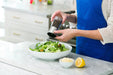 A sleek and stylish set of contemporary salt and pepper mills that have the mechanism at the top ensuring that kitchen worktops, cupboards and dining tables stay clean and mess free. Easy to use; simply pick up, turn upside down and twist to start grinding. The knob covering the mechanism has been designed to be extra long so you can easily reach it to adjust the grind from fine to coarse. The clear glass body ensures you will always have visibility of how much salt or pepper is in your mills. The wide base makes refilling easy and mess free.