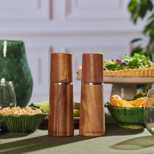 The Cole & Mason Oldbury Salt and Pepper Mills from are a smart complement to any modern kitchen. These rich walnut-stained beech wood and stee...