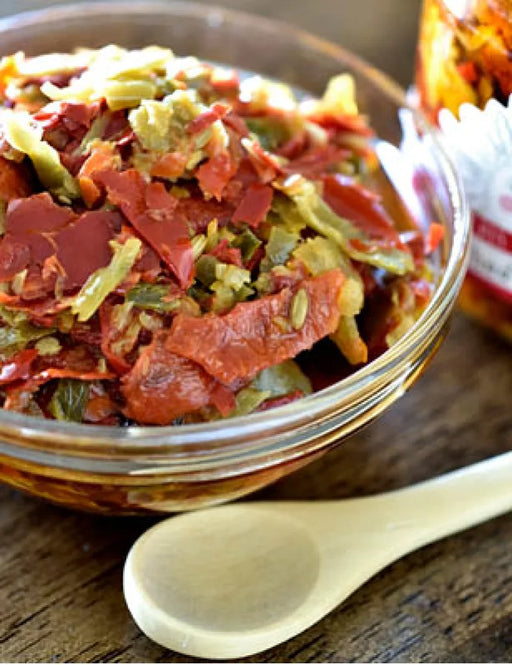 ##0## For their Pepper Composta, Masseria Mirogallo utilizes Peperone di Senise, a local variety of sweet pepper that they have cultivated from ove...