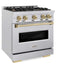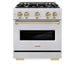 ZLINE 30" Dual Fuel Range, Gas Cooktop, Electric Convection Oven DuraSnow® Stainless Steel, Champagne Bronze CDRSZ-30-CB