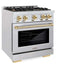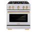 ZLINE 30" Select Dual Fuel Range Gas Cooktop Electric Convection Oven DuraSnow® Stainless Steel Gold HDRSZ-30-G