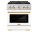 ZLINE 30"Gas Range, Convection Gas Oven, DuraSnow® White Matte, Gold SGRSZ-WM-30-G