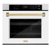 ZLINE 30"Professional True Convection Single Wall Oven, Air Fry, Self Clean, DuraSnow® White Matte, Champagne Bronze WASSZ-WM-30-CB