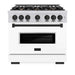 ZLINE 36" Dual Fuel Range, Gas Cooktop, Electric Convection Oven Stainless Steel, Matte White Door Matte Black CDRZ-WM-36-MB