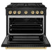 Luxury isn't meant to be desired - it's meant to be attainable. The ZLINE Autograph Edition 36 in. 5.2 cu. ft. 6 Burner Gas Range with Convection Gas Oven in Black Stainless Steel and Champagne Bronze Accents (SGRBZ-36-CB) features a versatile gas cooktop with 6 Italian-made burners, a high-performing gas convection oven, and elegant champagne bronze knobs and handle allowing you to master every meal. With a modern, timeless style and refined functionality, ZLINE Professional Gas Ranges are masterfully crafted to deliver an elevated culinary experience.