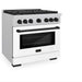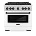ZLINE 36"Gas Range, Convection Gas Oven, DuraSnow® White Matte, Matte Black SGRSZ-WM-36-MB