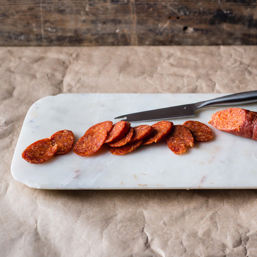 A spicy pepperoni that is sure to please anyone looking for robust flavor from the charcuterie case. The Story Made from a mix of cured beef and po...