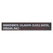 - Ingredients: Calamata olives, water, vinegar, salt