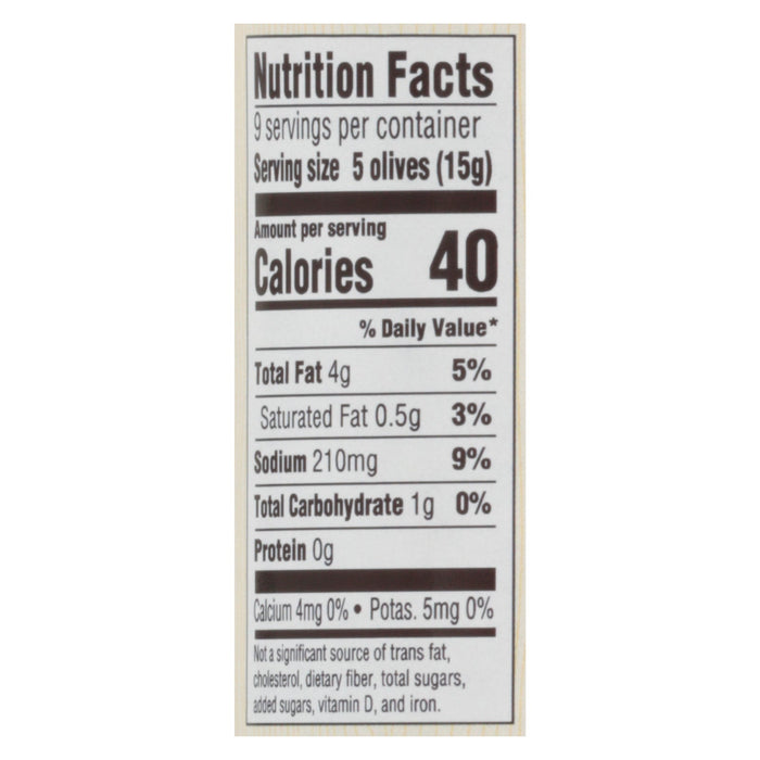 - Crafted with simple, high-quality ingredients: organic Kalamata olives, water, sea salt, and organic red wine vinegar.