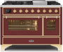ILVE 48" Majestic II Dual Fuel Range, 8 Sealed Brass Burners, Griddle, Burgundy, Brass Trim UM12FDNS3BUG