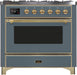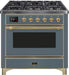ILVE Majestic II 36" Dual Fuel, Liquid Propane, Freestanding Range, Blue Grey, Brass Trim UM09FDNS3BGGLP