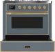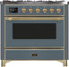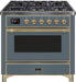 ILVE Majestic II 36" Dual Fuel, Natural Gas, Freestanding Range, Blue Grey, Brass Trim UM09FDNS3BGG