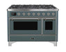 ILVE Majestic II 48 Inch Dual Fuel Liquid Propane Freestanding Range in Blue Grey with Chrome Trim UM12FDNS3BGCLP