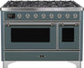 ILVE Majestic II 48" Dual Fuel Liquid Propane Freestanding Range, Blue Grey, Chrome Trim UM12FDNS3BGCLP