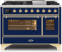 ILVE Majestic II 48" Dual Fuel Natural Gas Freestanding Range, Blue, Brass Trim UM12FDNS3MBG