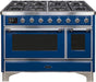 ILVE Majestic II 48"Dual Fuel Range Blue-Chrome Trim UM12FDNS3MBC