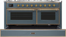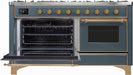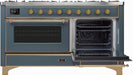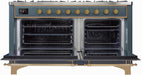 ILVE Majestic II 60 Inch Dual Fuel Natural Gas Freestanding Range in Blue Grey with Brass Trim UM15FDNS3BGG