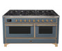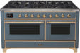 ILVE Majestic II 60" Dual Fuel Natural Gas Freestanding Range, Blue Grey, Brass Trim UM15FDNS3BGG
