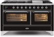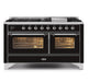 ILVE Majestic II 60" Dual Fuel Natural Gas Freestanding Range, Glossy Black, Chrome Trim UM15FDNS3BKC