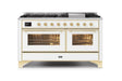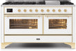 ILVE Majestic II 60" Dual Fuel Natural Gas Freestanding Range, White, Brass Trim UM15FDNS3WHG