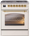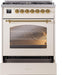 ILVE Nostalgie II 30" Dual Fuel Liquid Propane Range, Antique White, Brass Trim UP30NMPAWGLP