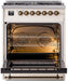 ILVE's Nostalgie II brings the ultimate cooking experience to your kitchen with many updated features that enhance the original Classic Nostalgie with Total Black Brass Non-Stick Nanotechnological Treatment, Easy Clean Enamel Oven Interior, and an updated Oven Control. This 30" dual fuel model also features a 25,000 BTU Dual Function Burner, Simmer at 900 BTU, Triple Glass Cool Down, Updated Oven Control, and Soft Closing System.